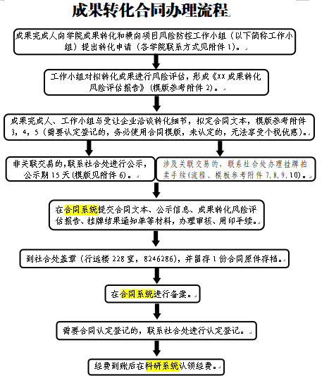 3.成果完成人、工作小组与成果受让企业洽谈转化细节,拟定合同文本,模版参考附件3,4,5(合同需要认定登记的,请务必按照合同模版填写,未通过认定的,无法享受税收优惠)。