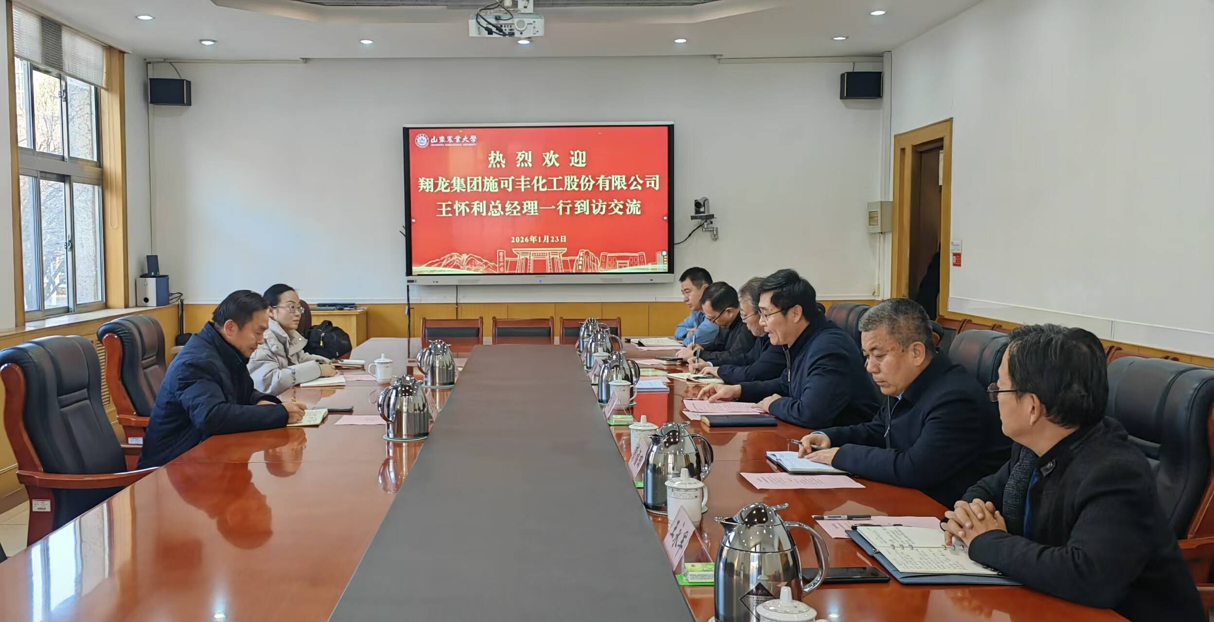 王勇向王怀利一行的到来表示热烈欢迎,并简要介绍了学校近年来发展情况和“冲一流”建设情况。他说,施可丰化工作为肥料行业的龙头企业,与学校在新型肥料研发、盐碱地综合治理、科技小院共建等领域开展了长期深入合作。下一步,校企双方将大力推动科技创新与产业创新深度融合,围绕教学科研实践育人基地共建、核心技术攻关、成果转化应用等领域进一步拓展合作空间。期待校企双方强强联合,为农业高质量发展和乡村全面振兴作出更大的贡献。