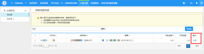 1.只有在合同系统完成备案的合同才能在科研系统认领经费。