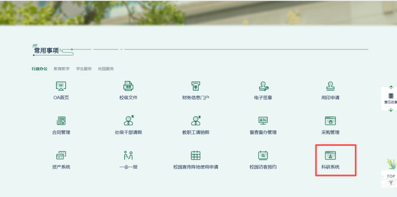 2.登陆智慧校园,进入科研系统。
