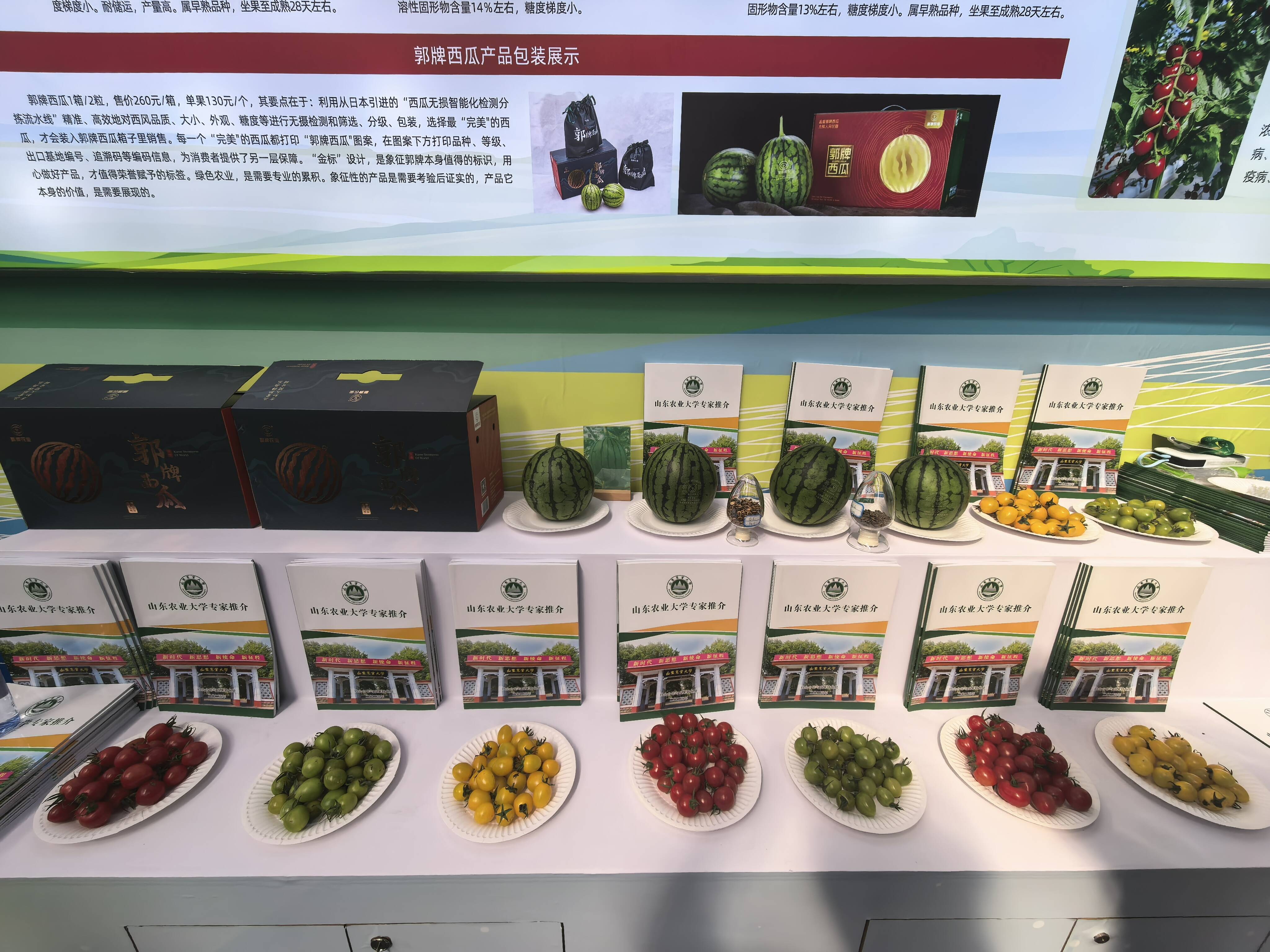 作为一所以农业科学为优势、多学科协调发展的省属重点高校,学校始终扎根齐鲁大地,牢记强农兴农使命,在蔬菜育种、智能农机、绿色栽培等领域深耕不辍,取得了一系列具有自主知识产权的重大成果。本次应邀参展,学校集中展示了温室大棚多功能作业智能车、岱番系列果蔬新品种、西瓜品种等多项核心技术成果,全方位展现了学校在农业新质生产力领域的科研实力与创新成果,多家企业现场表达了合作意向